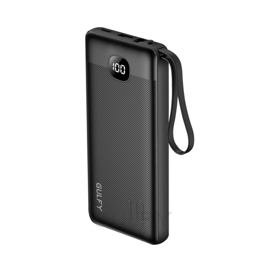 GULFY 10000mAh Power Bank | 22.5W Fast Charge, Built - in Cable, Digital Display