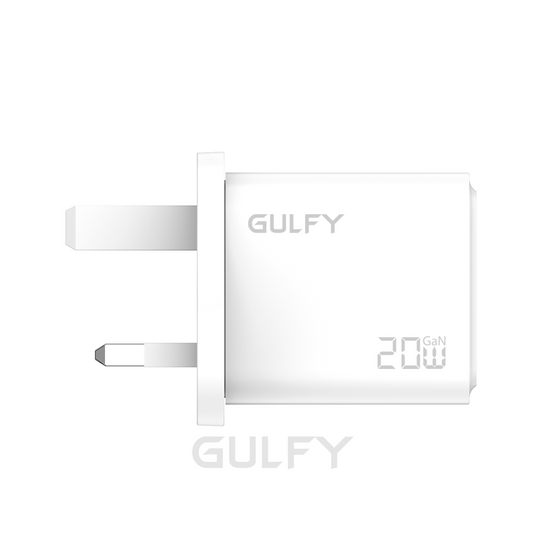 GULFY USB-C+Lightning Dual Ports Power Adapter| Fast Charging with Lightning to USB-C cable (White, UK Plug)